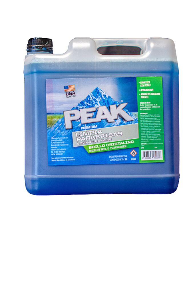 LAVAPARABRISAS PEAK LISTO PARA USAR Es un líquido formulado a base alcoholes y tensioactivos específicos para ser empleado en el sistema de lavado del parabrisas o luneta, el cual diluido con agua provee limpieza y evita la formación de escarcha sobre los cristales. Además, su formulación contiene un inhibidor de corrosión para proteger todo el sistema de dilución, carga y aplicación de la solución de limpieza.